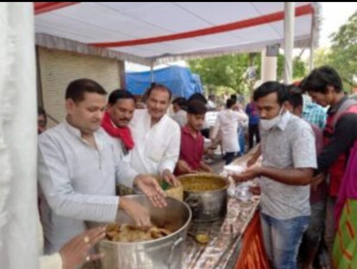 बिलासपुर/-हनुमान जन्म उत्सव के पावन पर्व पर सी एम ङी कालेज चौक मे आज दक्षिण मुखी हनुमान मंदिर समिति के सदस्यो द्वारा भंडारे का भव्य आयोजन जिसमे छत्तीसगढ योग आयोग सदस्य रविन्द्र सिंह जी ने नगर व प्रदेश वासीयो को हनुमान जयंती की बधाई देते हुए कहा की प्रभु हनुमान जी से हम सभी को सिखना चाहिए की विपरीत समय मे भी धैर्य के साथ माॅ पिता परिवार राज्य व प्रभु की रक्षा व सेवा कैसे की जाए। मै प्रभु राम भक्त हनुमान जी से नगर व प्रदेशवासीयो के कुशलता व रक्षा के लिए प्रार्थना करता हुॅ। महामारी के इस दौर मे प्रभु राम व हनुमान जी सभी परिवारों की रक्षा करे। जयती के अवसर पर हनुमान भक्तो द्वारा खीर पुङी फल मिठाई आदि समाग्री विपरीत किया। इस अवसर पर लक्ष्मी नारायण शर्मा रविन्द्र सिंह ठाकुर शिवा मुदिलयार सत्यनारायण शर्मा सुरजमल अग्रवाल निरज शर्मा अमृत लाल कछवहा दिपेश शर्मा शकर कछवहा नंदु सोनी बिनोद कछवहा राकेश अग्रवाल जगमोहन चौहान विनय अग्रवाल अन्ना राव नंदकिशोर तुल्सयान केशव अग्रवाल प्रशांत पाण्ङेय अभिमन्यु बजाज बब्लु कछवहा सगीत मोईत्रा आदित्य कछवहा सुरिल सराफ विनित कछवहा शिखर अग्रवाल सवित पाण्ङेय योगेश देवांगन सुरज पाठक सतोष चौहान अभिषेक कुमार रितिक सिंह ईशान अग्रवाल अजय पंत बजरंग श्रीवास यश सिंह अमन सलुजा तुषार कान्ती रवि सिंह आदि उपस्थित थे।