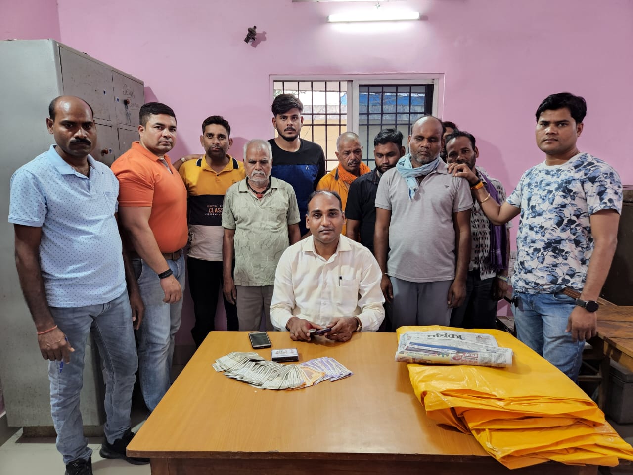 बिलासपुर(मस्मातुरी)/- मस्तूरी थाना क्षेत्र के अंतर्गत आने वाले ग्राम जोरवा पथरताल नवा तालाब के पास में जुआरियों के जुआ खेलने की लगातार सूचना प्राप्त हो रही थी जिसे गंभीरता से लेते हुए जिले के उ. म. नि एवं वरिष्ठ पुलिस अधीक्षक श्रीमती पारुल माथुर ने थाना मस्तूरी एवं A. C. C. U टीम बिलासपुर के साथ सयुक्त टीम बना कर ग्राम जोरवा पथरताल नवा तालाब के पास रेड करने निर्देशित करने पर श्रीमान अतिरिक्त पुलिस अधीक्षक ग्रामीण श्री रोहित झा एवं नगर पुलिस अधीक्षक चकरभाठा सुश्री गरिमा द्विवेदी के मार्गदर्शन पर ग्राम जोरवा में रेडकर जुआडियो 1 अनिल सिंह पिता सुधा राम साकिन जोरवा पथरताल 2 विक्रम सिंह साकिन नेवारी 3 अमृत लाल साकिन कोहरौदा 4 अलोक सिंह साकिन जोरवा पथरताल 5 सुनील सिंह साकिन भदौरा 6 सत्रुहन सिंह साकिन थेम्हापार 7 रमेश सिंह साकिन नेवारी 8 सुनील टंडन साकिन थेम्हापार जिला बिलासपुर का काट पत्ती नामक जुआ खेलते रंगे हाथ पकड़ा गया आरोपियों के फड़ एवं पास से कुल ₹25,500 रुपय नगदी तथा तिरपाल व 1 नग समंसँग मोबाइल 52 पत्ती तास के पत्ती जप्ती कर आरोपियों की विरुद्ध जुआ एक्ट की कारवाई किया गया।
