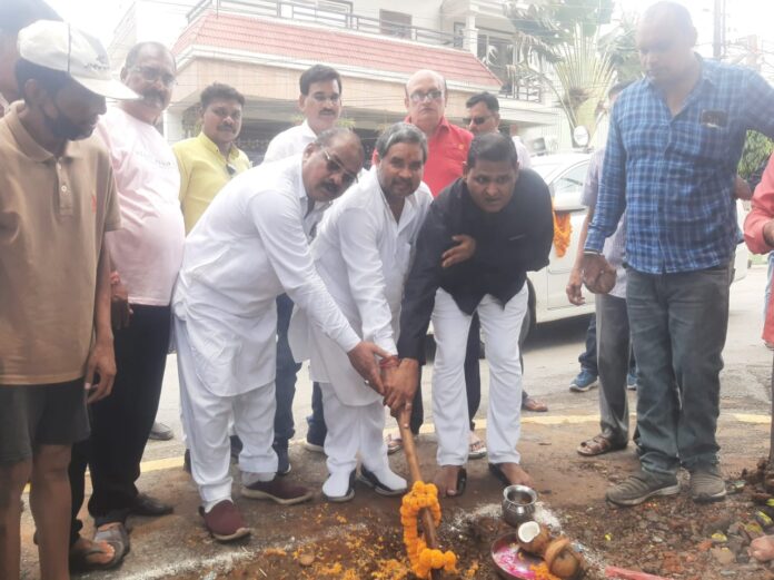 बिलासपुर नगर निगम जोन क्रमांक 4 के बिनोबानगर वार्ड क्रमांक 27 क्रातिनगर हनुमान मंदिर गार्डन मे पाथवे व बाऊन्ङीवाल निर्माण हेतु भुमि पुजन का कार्य हुआ संपन्न…