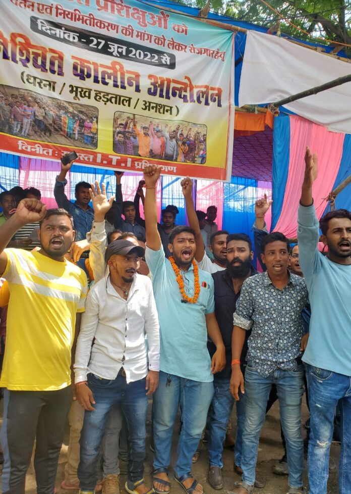 जिसके कारण मजबूर होकर आज क्रमिक भूख हड़ताल का प्रथम दिवस दिनांक जिनका नाम ऋषि पटेल संजय महोबिया अनुराग प्रजापति एवं मनजीत कुमार साहू आदि आईटीआई प्रशिक्षु लोग भूख हड़ताल पर बैठे हुए हैं और ऋषि पटेल का कहना है कि जब तक हमें प्रबंधन रोजगार नहीं किया जाता तब तक हम इसी तरह करने पर निरंतर रात दिन धार्मिक स्थल पर बैठे रहेंगे।