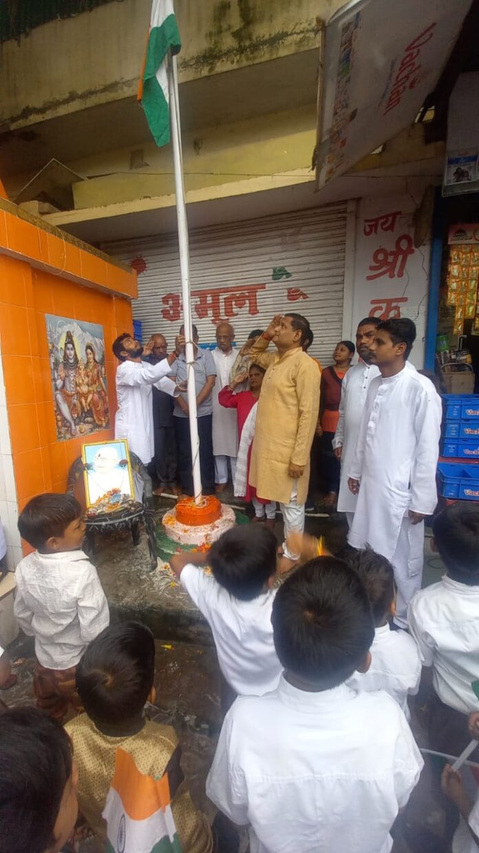 हम सभी का कर्तव्य है। की देश की एकता व अखण्ता को बनाये रखे । उद्बोधन बाद नगर निगम के वरिष्ठ पार्षद रविन्द्र सिंह व उपस्थित समाज सेवको द्वारा फल मिठाई व कापी पुस्तक वितरण किया गया ।