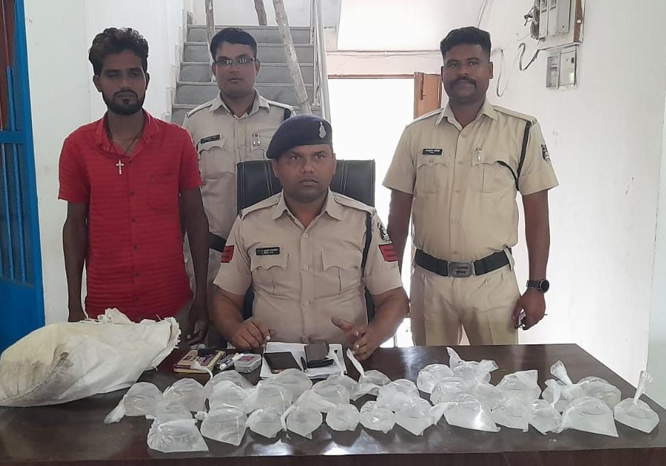 बिलासपुर/-उप महानिरीक्षक एवं वरिष्ठ पुलिस अधीक्षक महोदया बिलासपुर श्रीमती पारूल माथुर के निर्देशानुसार, अतिरिक्त पुलिस अधीक्षक महोदय (शहर) राजेंद्र जायसवाल, अतिरिक्त पुलिस अधीक्षक चकरभाटा सुश्री गरिमा द्विवेदी के मार्गदर्शन में अवैध शराब पर लगातार कार्यवाही की जा रही है।निर्देश के परिपालन में थाना चकरभाटा पुलिस टीम बनाकर थाना क्षेत्र अंतर्गत ऐसे स्थान जहां पर अवैध शराब बनाने और बिक्री की सूचना मिली रही है उन स्थानों में रेड कार्यवाही जारी है ।मुखबिर की सूचना के अनुसार विरतम सिंह महिलंगे बिक्री करने के उद्देश्य से 60 लीटर अंग्रेजी महुआ शराब के साथ कुआं गांव के कइया तालाब के पास मिला।उक्त व्यक्ती को शराब रखने बिक्री करने संबंधी दस्तावेज प्रस्तुत करने कहते हुए पर्याप्त समय दिया गया किंतु आरोपी द्वारा किसी भी प्रकार का कोई भी अनुज्ञप्ति प्रस्तुत नहीं किया गया। आरोपी के विरुद्ध आबकारी एक्ट के अंर्तगत कार्यवाही करते हुऐ गिरफ्तार किया गया है। अवैध शराब बनाने, खरीदी, बिक्री करने वालों के बारे में पता किया जा रहा है।कार्यवाही में थाना प्रभारी मनोज नायक, प्रधान आरक्षक प्रवीण पाण्डेय, आरक्षक राजेश श्रीवास, हरीश यादव, योगेंद्र खूंटे का योगदान रहा।