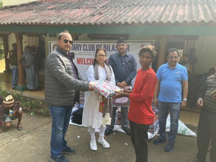 रोटरी क्लब बिलासपुर के द्वारा शिवतराई अचानकमार छपरवा के गांवों में बैगा आदिवासी को कंबल वितरण किया गया कड़ाके की ठंड झेल रहे गरीबों को राहत देने के लिए रोटरी क्लब बिलासपुर ने मदद को हाथ बढ़ाया है। शीतलहर को देखते हुए गरीब बुजुर्गों, महिलाओं एवं बच्चों को कबंल स्वेटर टोपा मौजा कॉपी पेंसिल रबर टॉफी बिस्किट खाद्य सामग्री वितरित किया गया। ऐसे कठिन मौसम में सबसे ज्यादा उन लोगों को दिक्कतों का सामना करना पड़ रहा है, जिनके पास न तो पहनने और न ओढ़ने के लिए पर्याप्त मात्रा में गर्म कपड़े हैं।