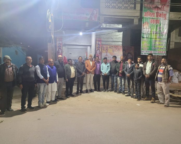 बिलासपुर जिले के लोकप्रिय कांग्रेस नेता त्रिलोक चंद्र श्रीवास ने नगर पालिका निगम बिलासपुर के वार्ड क्रमांक 16 में होने वाले उपचुनाव विष्णु नगर में पार्षद पद के कांग्रेस की उम्मीदवार श्रीमती अनीता हिमांशु कश्यप के पक्ष में अपने सहयोगियों सहित जाकर कार्यकर्ताओं की बैठक लिया, और कांग्रेस के पक्ष में मतदान करने की अपील किया, इस अवसर पर त्रिलोक चंद्र श्रीवास के साथ पंडित मंगल बाजपेई पंडित नवल किशोर शर्मा मोहन जायसवाल महेश मिश्रा कासिम अली आयुष सिंह राज कौशल श्रीवास्तव चरण सिंह राज गणेश वर्मा मोहसिन खान पार्थ कुमार नवीन कश्यप भरत कश्यप रतन कश्यप बाबा पांडे मनीष कश्यप हिमांशु कश्यप जितेंद्र वीके राहुल बाजपेई अर्पण अवस्थी दीपक रजक शंकर कश्यप अनिकेत रवि यादव आयुष यादव नवीन कश्यप प्रकाश रजक रोहित कश्यप प्रतीक तिवारी मांशु दीक्षित हेमंत मिश्रा बिट्टू सारथी आदि जन उपस्थित थे।