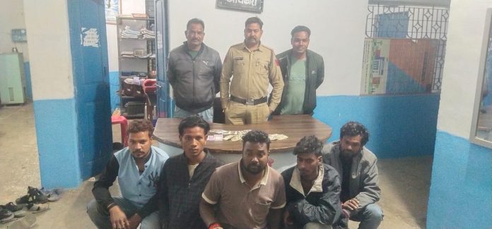 नाम आरोपी:-(1) पुनाराम केंवट पिता मोहित राम केंवट उम्र 35 वर्ष, साकिन लोफंदी थाना कोनी, जिला बिलासपुर(छ.ग.)(2) शिव कुंमार केवट पिता जगत राम केंवट उम्र 33 वर्ष साकिन लोफदी, थाना कोनी,जिला बिलासपुर(छ.ग.)(3) कृष्णा कुमार सारथी पिता उस कुमार सारथी उम्र 28 वर्ष साकिन लक्षनपुर थाना कोनी, जिला बिलासपुर(छ.ग.)(4) नरेन्द्र कुमार साहू पिता रविशंकर साहू उम्र 21 वर्ष साकिन लक्षनपुर थाना कोनी जिला बिलासपुर(5) सोनू सागर पिता अवतार सिंह सागर उम्र 20 वर्ष साकिन सरवानी ,थाना खरसिया, जिला रायगढ.