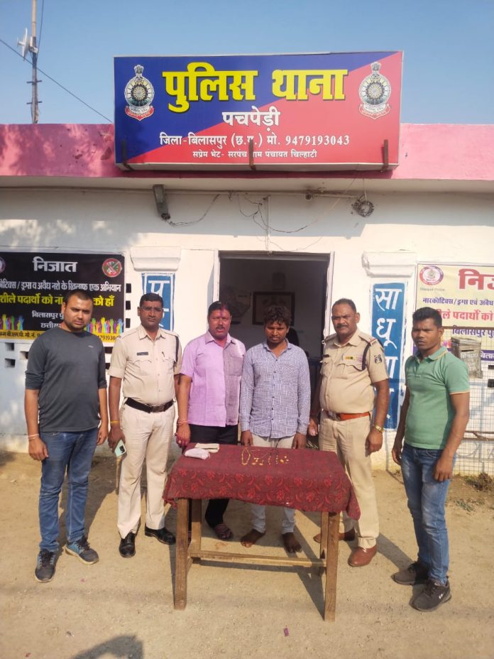 बिलासपुर:- मामले का संक्षिप्त विवरण इस प्रकार है कि श्रीमान पुलिस अधीक्षक. महोदय संतोष सिंह द्वारा जिले में हो रहे सोने एवम चांदी के जेवरात की चोरी की लगातार शिकायतों को मद्देनजर रखते हुए जिले के समस्त थाना / चौकी प्रभारियों को क्षेत्र में सतत् निगाह रखते हुए त्वरित कार्यवाही करने हेतु निर्देशित किया गया था, जिसके परिपालन में श्रीमान अ. पु. अ. (ग्रामीण) राहुल देव शर्मा एवं श्रीमान न.पु.अ., चकरभाठा, गरिमा द्विवेदी के मार्गदर्शन में क्षेत्र में सतत निगाह रखी गई थी कि दिनांक- 07/3/2023 को जरिये मोबाइल फोन मुखबीर से सूचना मिला कि ग्राम मानिकचौरी मेन रोड में एक व्यक्ति अपने पास में संदिग्ध रुप से सोने का जेवर रखा बेचने के फिराक में खड़ा है सूचना पर हमराह स्टाफ एवं गवाहन के ग्राम मनिकचौरी पहुंचकर पुलिस टीम द्वारा घेराबंदी कर आरोपी जयकिशन देवार पिता संजय देवार उम्र 36 साल निवासी बलौदाबाजार भैसा पसरा थाना व जिला बलौदा बाजार छ.ग.के कब्जे से पर्स के अंदर सोने के चटकन मंगलसूत्र झुमकी सिक्का को समक्ष गवाहन जप्त कर चोरी के संदेह पर पूछताछ करने से आरोपी द्वारा चोरी का सामान होना स्वीकार किया जिस पर इस्त. क. 01/23 धारा 41 (1-4) जाफौ. / 379 भादवि के तहत कार्यवाही की गई। आरोपी को विधिवत गिरफतार कर न्यायिक रिमाण्ड पर भेजा गया।