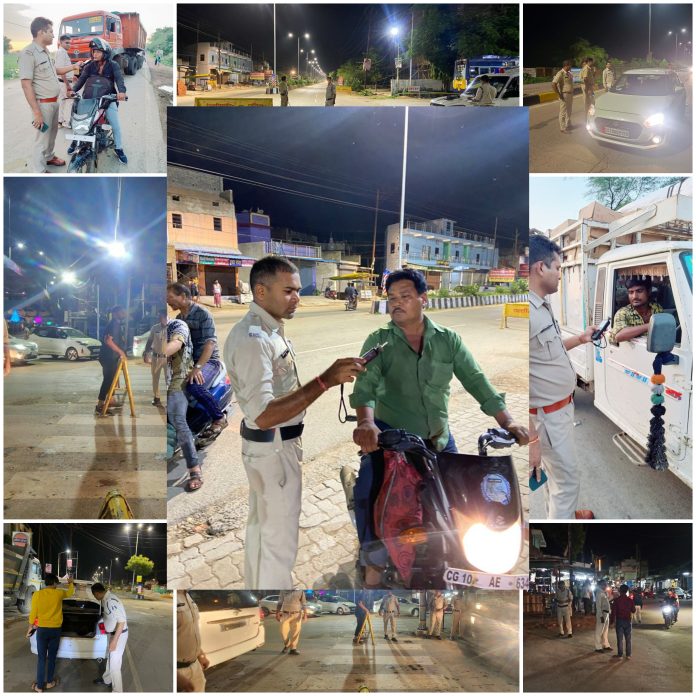 पुलिस अधीक्षक बिलासपुर संतोष कुमार सिंह के निर्देशानुसार अतिरिक्त पुलिस अधीक्षक शहर राजेंद्र जायसवाल, अतिरिक्त पुलिस अधीक्षक ग्रामीण राहुल देव शर्मा, नगर पुलिस अधीक्षक सिविल लाइन संदीप कुमार पटेल (भापुसे), नगर पुलिस अधीक्षक कोतवाली पूजा कुमार (भापुसे), उप पुलिस अधीक्षक यातायात संजय साहू के मार्गदर्शन में बिलासपुर के प्रमुख चौराहों में, सभी ग्रामीण थाना में मोबाइल चेक पोस्ट लगाकर संदिग्ध वाहनों की चेकिंग की गई। चेकिंग के दौरान ड्रिंक एंड ड्राइव, ब्लैक फिल्म लगाने वाले कार, बिना नंबर गाड़ी, तीन सवारी आदि यातायात नियमों को नहीं मानने वाले की जांच कर वैधानिक कार्यवाही की गई है। ब्रेथ एनालाइजर मशीन से चेक किया गया व नियत सीमा से अधिक शराब पी कर गाड़ी चलाने वालों की गाड़ियों को जप्त किया गया है, 185 MV एक्ट के अंतर्गत कुल 38 वाहनों को जप्त किया गया है, जिसे माननीय न्यायालय के समक्ष पेश किया जाएगा। ब्लैक फिल्म, तीन सवारी, बिना नंबर की वाहनों पर कार्यवाही करते हुए कुल 138 वाहन स्वामी से एमवी एक्ट के तहत 49 हजार का समन शुल्क लिया गया । इस प्रकार कुल 176 वाहनों पर एमवी एक्ट के अंतर्गत कार्यवाही की गई है। मोबाइल चेक पोस्ट लगाकर वाहनों की सरप्राईज चेकिंग का उद्देश्य अपराधिक गतिविधि वाले व्यक्तियों पर अंकुश लगाना तथा ड्रिंक एंड ड्राइव से होने वाली दुर्घटनाओं पर रोक लगाना है।