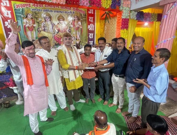 भगवान श्री राम का नाम आनंददाई होने के साथ-साथ मुक्तिदाई भी है ,राम शब्द का अर्थ ही अपने आप में आनंद प्रदाय करने वाला है, राम शब्द दो अक्षरों के सहयोग से बना है, रम धन-धम, रम का अर्थ है रमनi, समा जाना, और घम का अर्थ होता है ब्रह्मांड में खाली स्थान ,अर्थात पूरा ब्रह्मांड जिसमें रमi हुआ है वह श्री राम है, तो पूरे ब्रह्मांड में श्री राम है तो पूरे ब्रह्मांड में श्री राम के हो जाओ, और अपने मन में राम को बसा लो, दुनिया के घट-घट में प्रभु श्री राम बसे हैं, भगवान श्री राम का मूल नाम दशरथ- राघव था, राम नाम उनकी उपाधि है,जो व्यक्ति जीवन में दो बार भी राम का नाम, एक बार भी राम का नाम जप लगा उसका उद्धार हो जाएगा, यह बातें बेलतरा विधानसभा क्षेत्र के ग्राम रानीगांव में आयोजित अखंड नवधा रामायण में पहुंचे जिले के लोकप्रिय कांग्रेस नेता, अखिल भारतीय कांग्रेस कमेटी के राष्ट्रीय समन्वयक, प्रभारी- उत्तर प्रदेश/ गुजरात, त्रिलोक चंद्र श्रीवास ने व्यक्त किया, इस अवसर पर उनके साथ भागवताचार्य पंडित सुरेंद्र पांडे ने भी भगवान श्री राम के आदर्शों पर प्रकाश डाला ,इस अवसर पर आयोजन समिति के अध्यक्ष राघवेंद्र गवाही राघवेंद्र गहवई जी, राधेश्याम तंबोली, सरपंच श्रवण गहवाई, रेवाराम गहवई भागवत कोरि वीरेंद्र, रामअवतार गहवई अशोक देवांगन सहित समिति के सदस्यों के द्वारा आमंत्रित अतिथि श्री त्रिलोक चंद्र श्रीवास एवं अन्य अतिथियों का शाल श्रीफल एवं भगवान श्री राम के तेलचित्र देखकर सम्मान किया गया, इस अवसर पर श्री चरण सिंह राज हर्ष कश्यप राधेश्याम धीवर दीपचंद गहवई ,जयप्रकाश, नरेश, कामता गहवई , देवांगन, जनकराम देवांगन, सखाराम साहू, उमेश तंबोली जागेंद्र,श्रवण तंबोली रुपेश कोरी अशोक सहित हजारों की संख्या में मानस प्रेमी उपस्थित थेll