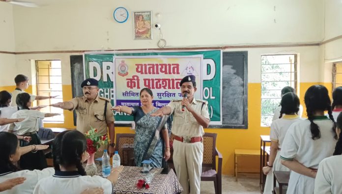 प्रभारी पुलिस अधीक्षक, राजेश अग्रवाल के आदेशनुसार एवं अतिरिक्त पुलिस अधीक्षक (यातायात) नीरज चंद्राकर के दिशा निर्देश पर “शिक्षण सत्र” प्रारंभ होने पर प्रत्येक स्कूल एवं कॉलेज में यातायात की पाठशाला प्रारंभ किया गया…इस अवसर पर यातायात बिलासपुर के एडिशनल एस०पी० नीरज चंद्राकर ने कहा कि- “जिस प्रकार हम स्वतः करोना जैसे महामारी में सचेत होकर अपनी जान की रक्षा किए हैं, ठीक उसी प्रकार हम सभी को सड़कों में उतनी ही गंभीरता से यातायात के नियमों का पालन करना होगा”
