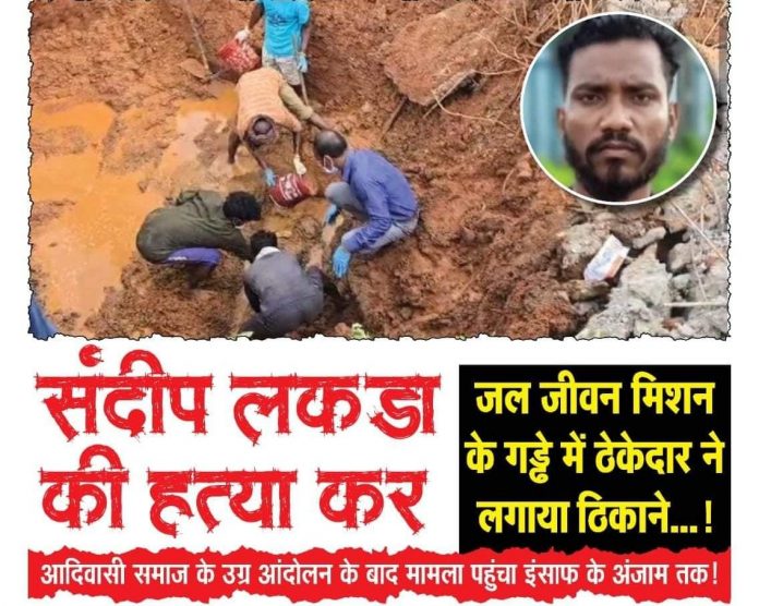 सरगुजा , सीतापुर ग्राम बेलजोरा के आदिवासी समुदाय के राज मिस्त्री संदीप लकरा को ठेकेदार अभिषेक पांडे और उनके मुंशी प्रत्यूष पांडे , गौरी तिवारी के द्वारा 7 जून को मरते दम तक हाथ पैर बांध कर मारा गया । और गायब कर दिया कर था। और 8 जून को जाकर घर में जा कर धमकाया गया की संदीप को ढूंढ कर बताओ ।घटना स्थल में संदीप का मोटर साइकिल और जूता महीनो पड़ा रहा। प्रत्यक्ष गवाह होने के बाद भी परिजनों के द्वारा पुलिस में fir नहीं लिखा गया। सर्व आदिवासी समाज (रूढ़िजन्य परंपरा पर आधारित) के बलरामपुर और सरगुजा के जिला टीम के द्वारा थाना का घेराव किया गया प्रदेश टीम के द्वारा बता करने के उपरांत बहुत मुश्किल से fir किया ।