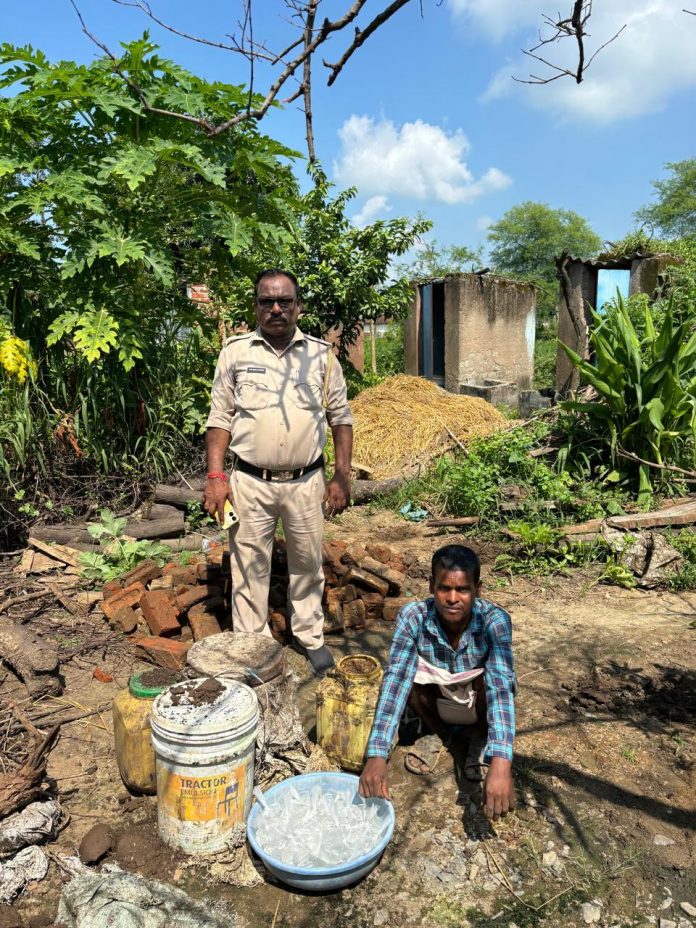 2)जप्तसामाग्री- 34लीटर कच्ची शराब एवं 60kg लहान