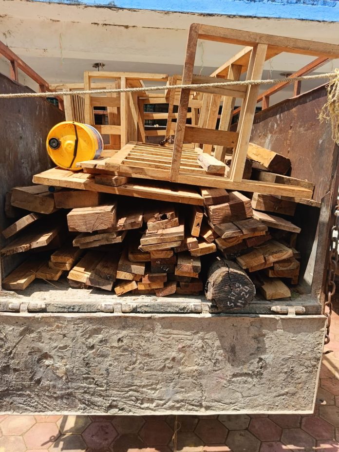 बिलासपुर कोटा थाना क्षेत्र अंतर्गत की घटना पुलिस अधीक्षक महोदय बिलासपुर रजनेश सिंह (भा.पु.से.), अतिरिक्त पुलिस अधीक्षक (ग्रामीण) अर्चना झा (रा.पु.से.) एवं अनुविभागीय पुलिस अधिकारी नूपुर उपाध्याय(रा.पु.से.)के मार्गदर्शन में चलाए जा रहे ऑपरेशन प्रहार के तहत दिनांक 18.09.2024 को थाना कोटा पुलिस को सूचना प्राप्त हुआ कि ग्राम लमकेना में संजय खांडे एवम सुरेश खांडे अपने घर में अवैध तरीके से लकड़ी रखे हुए है की सूचना पर ग्राम लमकेना पहुंच कर संजय खांडे एवम सुरेश खांडे के घर पर रेड कार्यवाही किया गया आरोपी सुरेश खांडे के घर से 107 नग सागौन साल और पल्ला पटिया सिलपट एवम सागौन से बना 3 नग कुर्सी सोफा 01 नग टी टेबल कीमती 700000 रुपए बरामद किया गया । आरोपी संजय खांडे के घर से कुल 166 नग सागौन बीजा साल के लकड़ियों से बना पल्ला पटिया खुरा सिलपट एवम अन्य सामान कीमती 500000 रुपए को जप्त किया गया है ; जप्त किए गए साल एवम सागौन के लकड़ियों को वन विभाग को विधिवत सुपुर्द किया गया है।