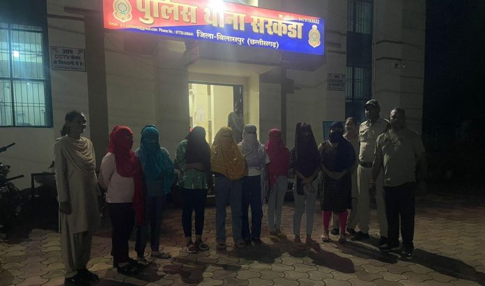 बिलासपुर सरकण्डा क्षेत्रांतर्गत मोपका क्षेत्र में अवैध देह व्यापार की सूचना मिल रही थी। थाना क्षेत्र में मुखबीर तैनात कर पतासाजी किया जा रहा था। आज दिनांक 08.10.2024 को मुखबीर से सूचना मिली कि मोपका के एक मकान में 7-8 लड़कियां दीगर राज्य से आयी हुई हैं, जो देहव्यापार में लिप्त है। उक्त सूचना के संबंध में सी.एस.पी. (सरकंडा) सिद्धार्थ बघेल के नेतृत्व में निरी तोपसिंह नवरंग व उप निरी. रामनरेश यादव के हमराह में टीम तैयार कर मुखबीर के बताए घर पर रेड कार्यवाही किया गया। जहां एक मकान में एक युवक एवं 8 युवतियां संदिग्ध अवस्था में मिले जिनसे पूछताछ करने पर गोलमोल जवाब देने लगे। जिन्हे कड़ाई पूर्वक पूछताछ करने पर देहव्यापार हेतु अन्य स्थानों से आना बताए। 8 युवतियों में 2 उत्तर प्रदेश, 1 पश्चिम बंगाल, 1 मध्य प्रदेश और 4 छत्तीसगढ़ की हैं। जिनके विरूद्ध उचित वैधानिक कार्यवाही की गई है।