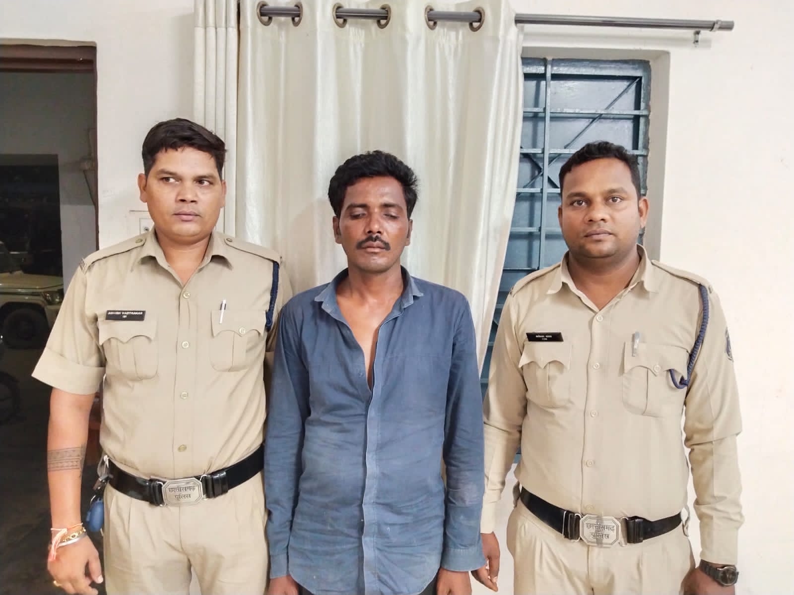 गिरफ्तार आरोपी- मंगल शिकारी पिता बुधवारी शिकारी उम्र 43 साल निवासी सलखा थाना रतनपुर जिला बिलासपुर छत्तीसगढ