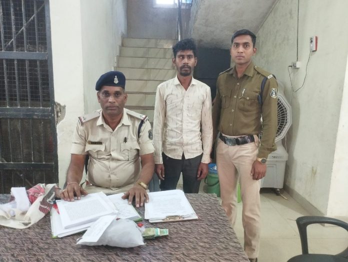 बिलासपुर- सकरी थाना क्षेत्र अंतर्गत कि पुलिस अधीक्षक महोदय बिलासपुर रजनेश सिंह द्वारा “आपरेशन प्रहार’’ के तहत अवैध मादक पदार्थ एवं अवैध नशा के विरूद्ध कार्यवाही करने निर्देशित दिये जाने पर श्रीमान नगर पुलिस अधीक्षक (सिविल लाईन) निमितेश सिंह परिहार से मार्गदर्शन में थाना प्रभारी सकरी निरीक्षक दामोदर मिश्रा के नेतृत्व में थाना सकरी पुलिस द्वारा नशा के कारोबार करने वालो की पतासाजी हेतु मुखबीर लगाए गया था कि दिनांक 16-11-2024 को जरिये मुखबीर से सूचना मिली कि ग्राम लोखण्डी निवासी दिनेश कुमार निर्मलकर ग्राम लोखण्डी के रामघाट तालाब के पास गांजा बिक्री कर रहा है मुखबीर सूचना के निशानदेही पर से आरोपी दिनेश कुमार निर्मलकर पिता राजकुमार निर्मलकर उम्र 27 साल साकिन ग्राम लोखण्डी रामघाट के पास थाना सकरी जिला बिलासपुर को गांजा बिक्री करते पकडा गया, आरोपियो के कब्जे से 220 ग्राम गांजा कीमती 2000 रूपये जप्त कर आरोपी को विधिवत गिरफतार कर न्यायिक रिमाण्ड पर भेजा गया ।उक्त कार्यवाही में निरीक्षक दामोदर मिश्रा, सउनि विजय राठौर, आर0 सुमंत कश्यप, अमित पोर्ते, आशीष शर्मा, विनेद्र कौशिक की सराहनीय भूमिका रही।