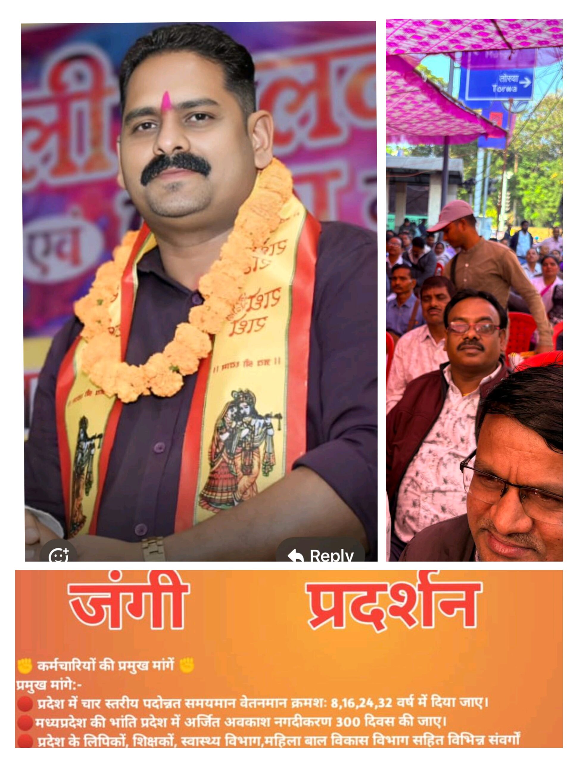 सुनील यादव ने बताया कि कर्मचारियों की लंबे समय से लंबित मांगों के निराकरण के लिए यह प्रदर्शन आयोजित किया जा रहा है। प्रमुख मांगों में मोदी की गारंटी के अनुसार जुलाई 2016 से लंबित महंगाई भत्ता एरियर्स की राशि कर्मचारियों के जीपीएफ खाते में समायोजित करने, प्रदेश में चार स्तरीय पदोन्नत समयमान वेतनमान क्रमशः 8, 16, 24 एवं 32 वर्ष में प्रदान करने, तथा मध्यप्रदेश की भांति अर्जित अवकाश नगदीकरण 300 दिवस करने की मांग प्रमुख रूप से शामिल है।
